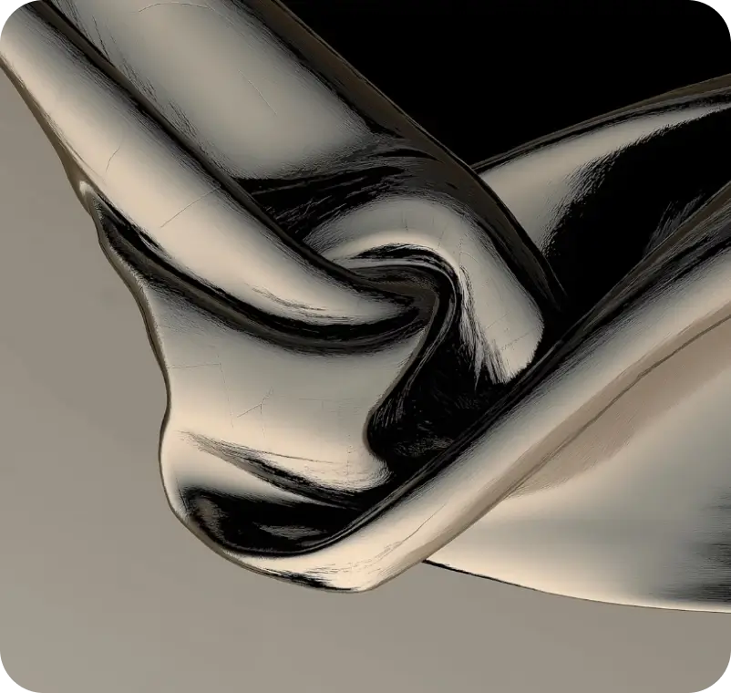 Abstract digital art of a distorted dark silhouette with blue and purple oval shapes on a light background.Abstract fluid shapes with swirling gradients of blue, orange, yellow, and purple colors.